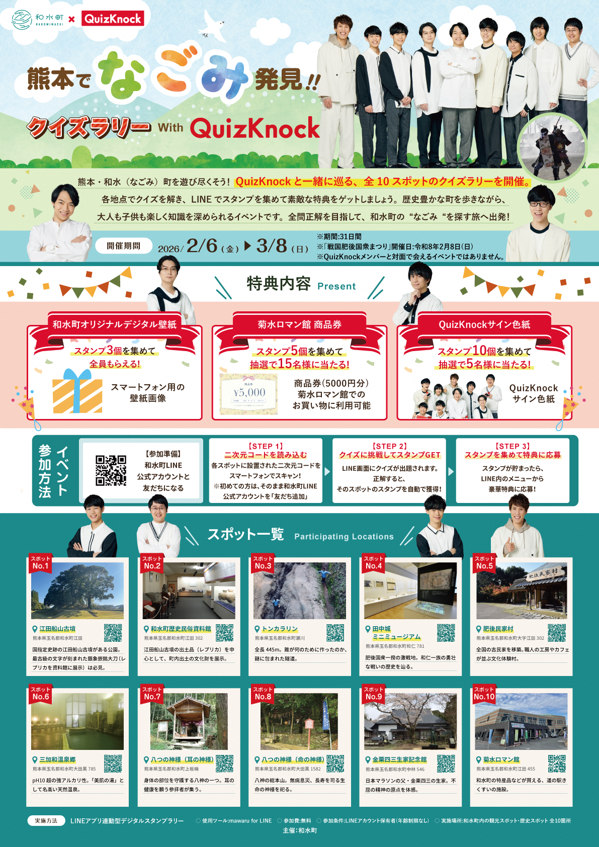 熊本で「なごみ」発見👀!クイズラリー with QuizKnock 開催中!!最終更新日:2026年02月07日